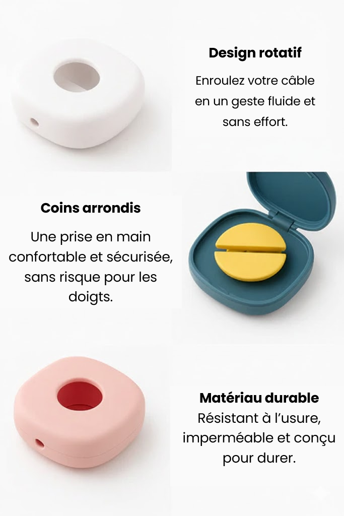 Avec son format compact et son mécanisme rotatif fluide, le Rolioop garde vos câbles parfaitement organisés et protégés.